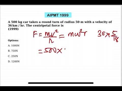A 500 kg car takes a round turn of radius 50 m with a velocity of 36 km ∕ hr. The centripetal force is