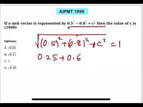 If a unit vector is represented by 0.5^i − 0.8^j + c^k then the value of c