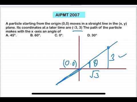 A particle starting from the origin (0,0) moves in a straight line in the (x, y) plane. Its coordinates at a later time are (√3, 3) The path of the particle makes with the x -axis an angle of