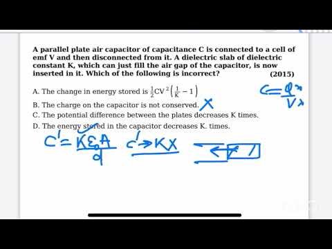 , which can just fill the air gap of the capacitor, is now inserted in it. Which of the following is incorrect ?