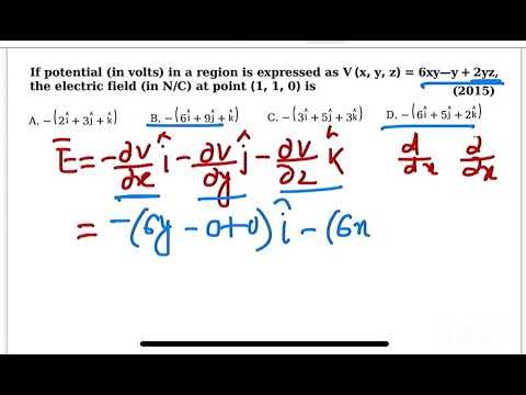 NEET 2015:If potential (in volts) in a region is expressed asV(x,y,z)=6xy−y+2yz, the electric field